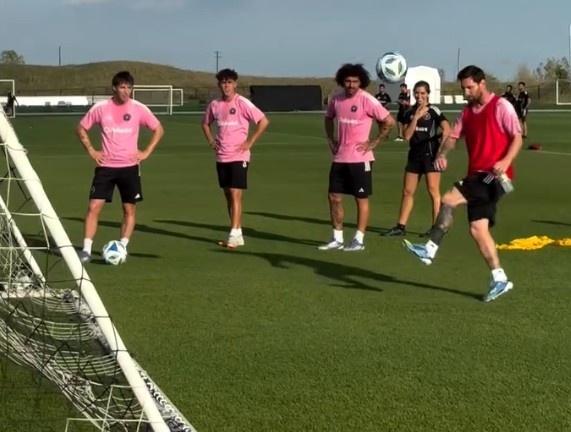 9月27日讯 迈阿密国际社媒晒出队内练习 视频,梅西和德保罗进行另类射球 PK。