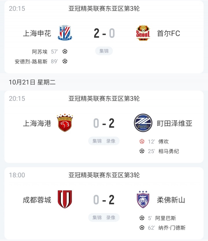 10月22日讯 亚冠精英职业联赛 东亚区第3轮结束,中超三支球队取得1胜2负的成绩。