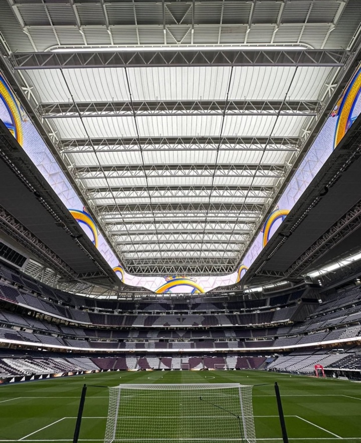 🏟️大战在即!皇马官方晒照:伯纳乌顶棚已关闭,静待国家德比