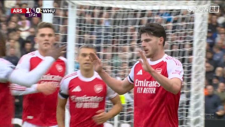 10月04日讯 英超第7轮,阿森纳vs西汉姆联。赛事 第38分钟,欧洲杯直播吧赖斯补射攻破旧主大门,阿森纳1-0领跑 !得分 后赖斯没有庆祝。